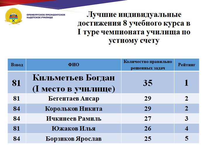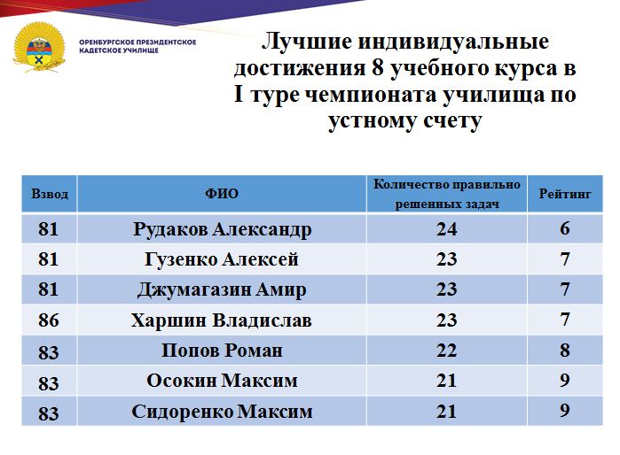 Научные сотрудники музея рассказали воспитанникам о почти трёх столетиях истории Оренбурга. В зале «История основания Оренбурга» кадет познакомили с уникальными экспонатами и рассказали о том, как выглядела Оренбургская крепость в первые десятилетия своего существования и как жили ее первые поселенцы. В зале «Крестьянская война 1773–1775 г.г. под предводительством Емельяна Пугачева» ребята вспомнили о причинах крестьянской войны, о событиях, предшествовавших ее началу, и о том, какую роль в этих трагических событиях сыграла Оренбургская крепость. В зале «А.С.Пушкин в Оренбурге» кадеты с интересом слушали о пребывании поэта Александра Сергеевича Пушкина в Оренбурге с 18 по 20 сентября 1833 года.