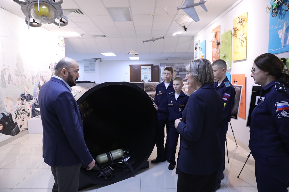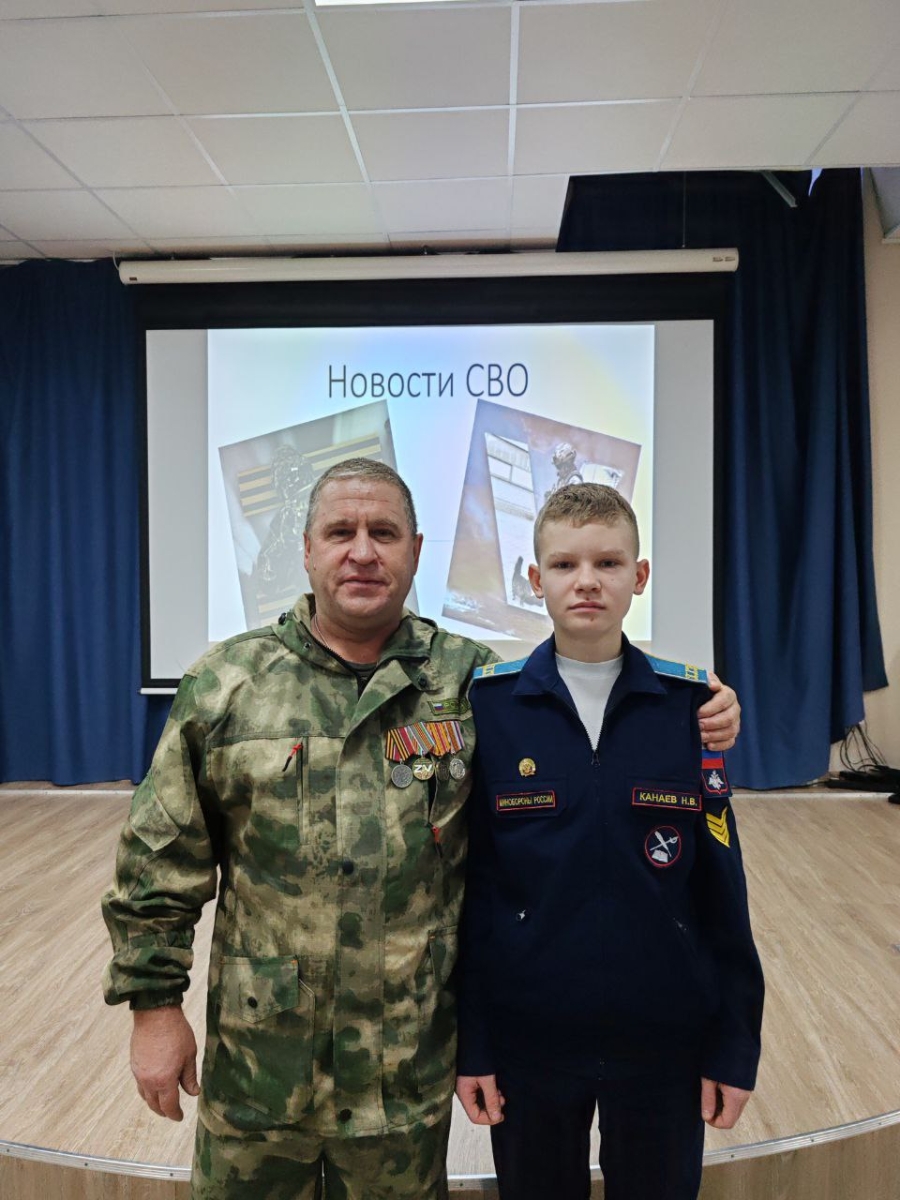 Педагог-организатор 8 курса Е.Г. Петриняк и её воспитанники активно задавали вопросы, восхищаясь мужеством и скромностью защитника, приближающего нашу победу. Вместе с заведующим музеем Е.В. Мирошниченко кадеты Дмитрий Пивоваров, 81 взвод, Александр Пашинин, 83 взвод, Роман Ильин, Матвей Сауков, 84 взвод провели для гостя экскурсию в музее СВО: Героизм. Мужество.Отвага, в котором одна из экспозиций посвящена операции «Поток».