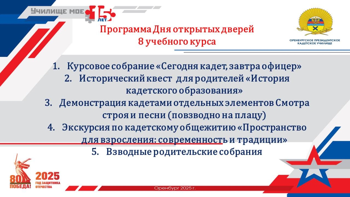 Первая учебная четверть завершилась курсовым Днем открытых дверей для родителей кадет 8 курса:
