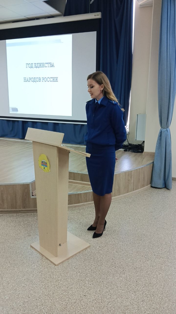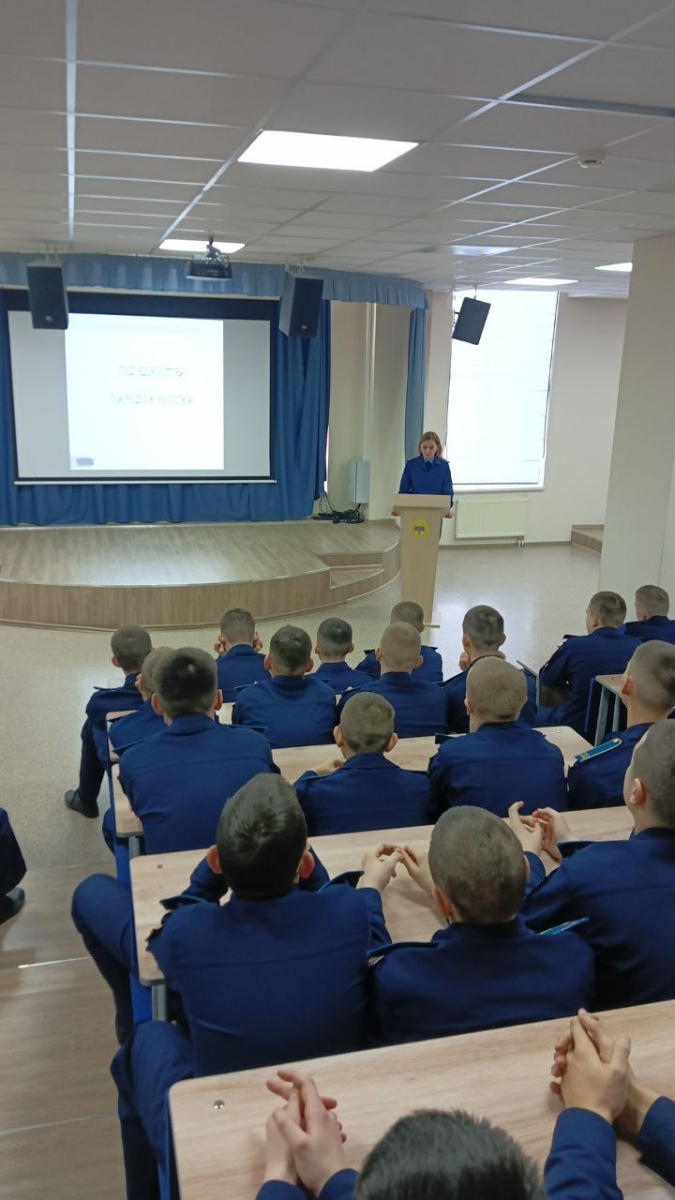 На 8‑м курсе Президентского кадетского училища состоялась значимая просветительская встреча «Единство народов России как основа противодействия экстремизму и сепаратизму». В качестве гостя выступила помощник прокурора Пивоварова О. К.